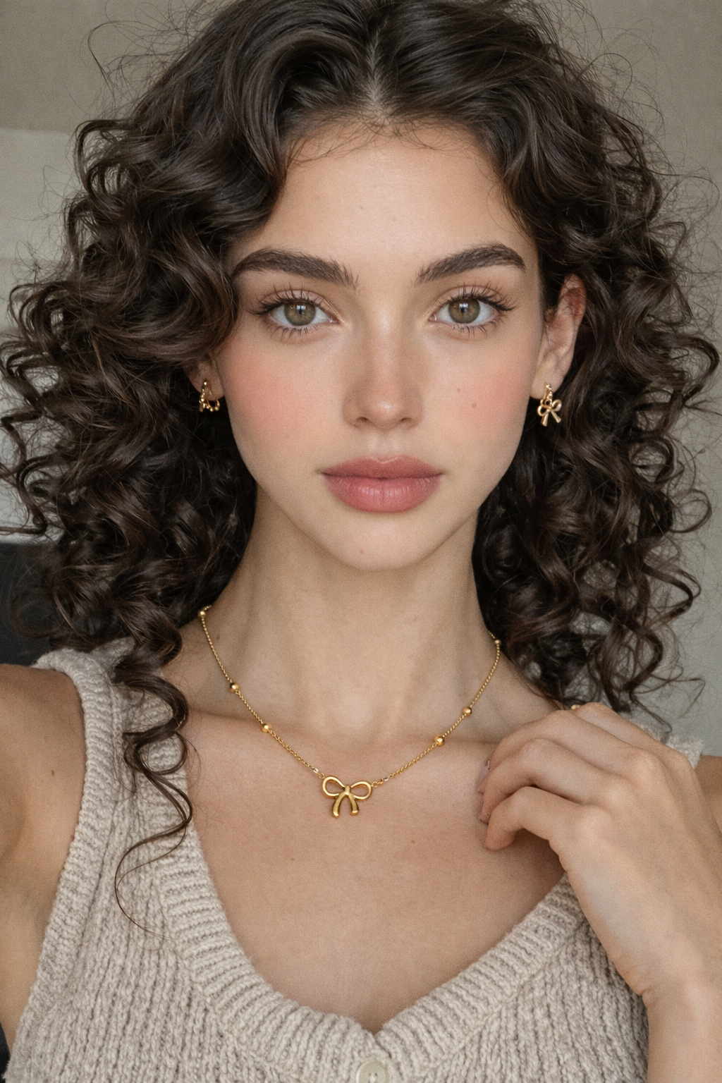 "The ultimate Coquette touch. 🎀✨ This isn't just a bow necklace—it’s a mood. Featuring a dainty beaded chain that adds the perfect amount of texture to your stack.
