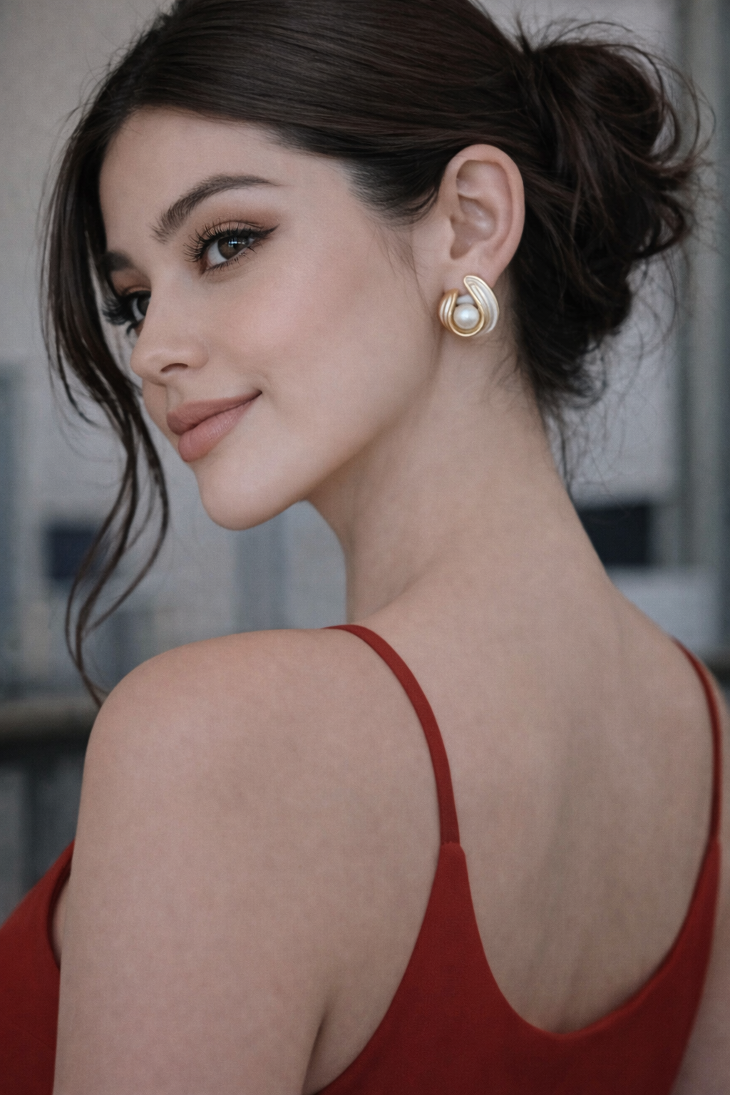 "Artistic curves. 🐚✨ These Pearl Swirl Studs are a total masterpiece. Featuring a sculptural gold and white enamel design that cradles a lustrous pearl.